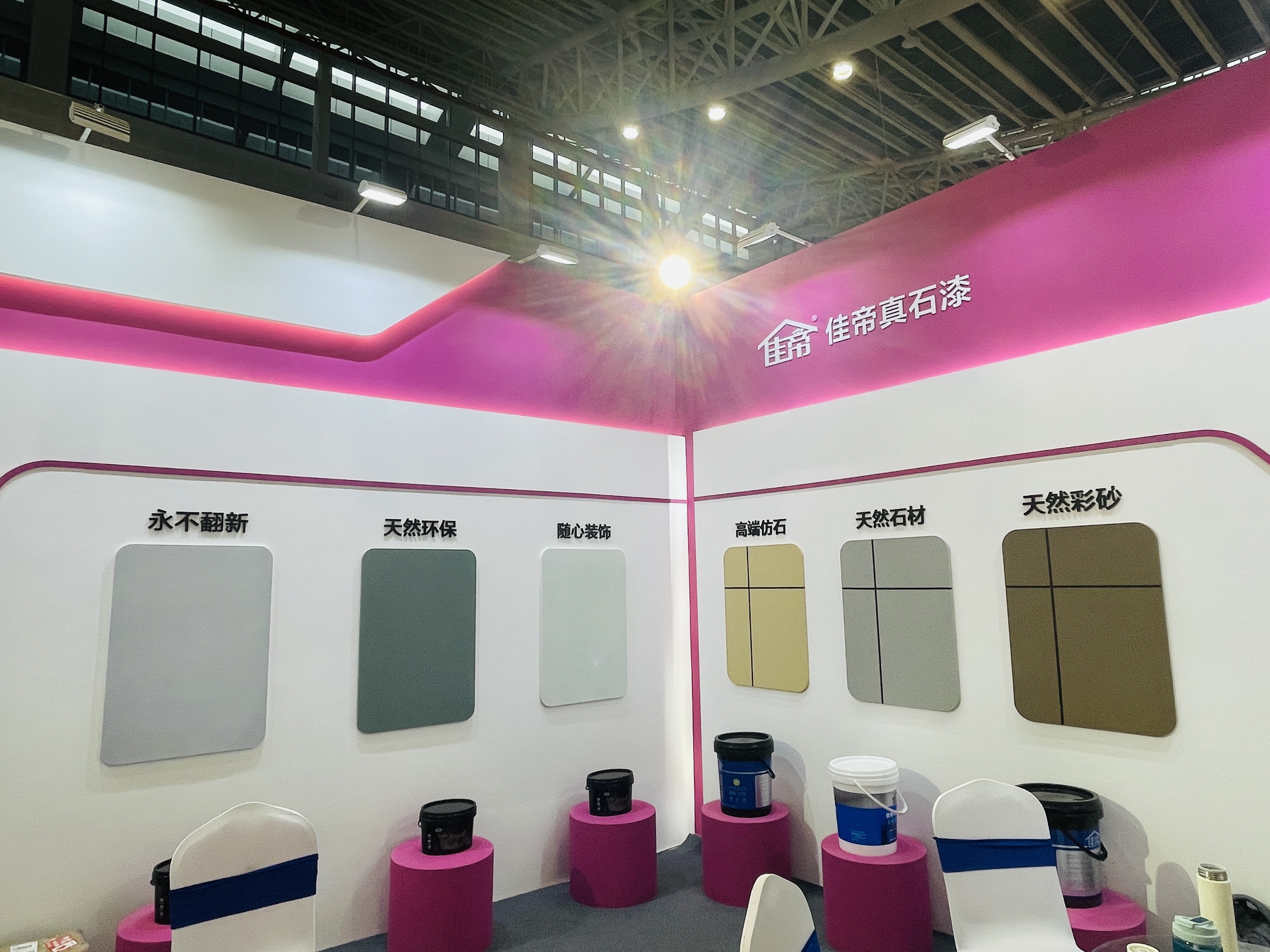 本次展示產(chǎn)品內(nèi)容——真石漆、仿石漆【水包砂】、石膏基自流平、藝術(shù)漆系列等產(chǎn)品的展示,以多元化產(chǎn)品滿足消費者對于不同裝飾風(fēng)格的需求讓居家空間熠熠生輝,更為消費者提供健康綠色環(huán)保的家居空間。